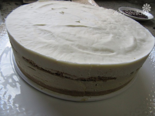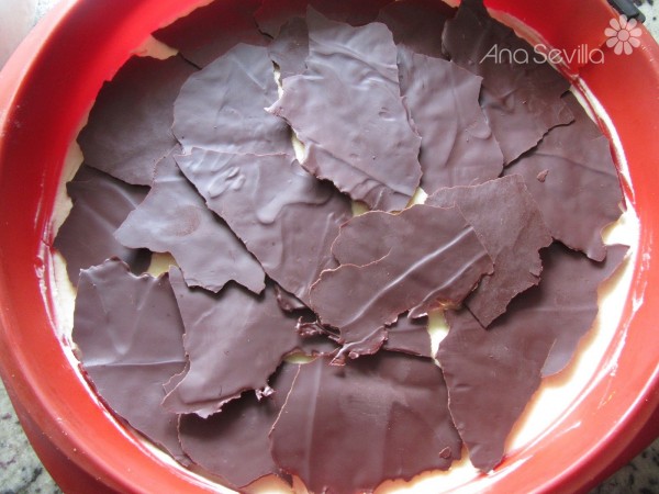 1- Sobre la base de galletas, extender la nata mezclada con el toffe y llevar al congelador como 1 hora.