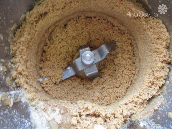 1- Moler las galletas con golpes de turbo. Añadir la mantequilla fundida y la leche, 10 seg. vel.6.